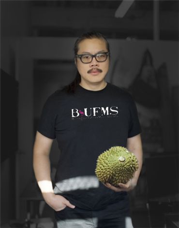 When C. Spencer Yeh enters wearing a BuFMS T-shirt, I shout “Curtiss!” at him. He has brought me a durian. Hard to believe he’s not at the Hospital Records 20th Anniversary across town, but the man is true blue.
